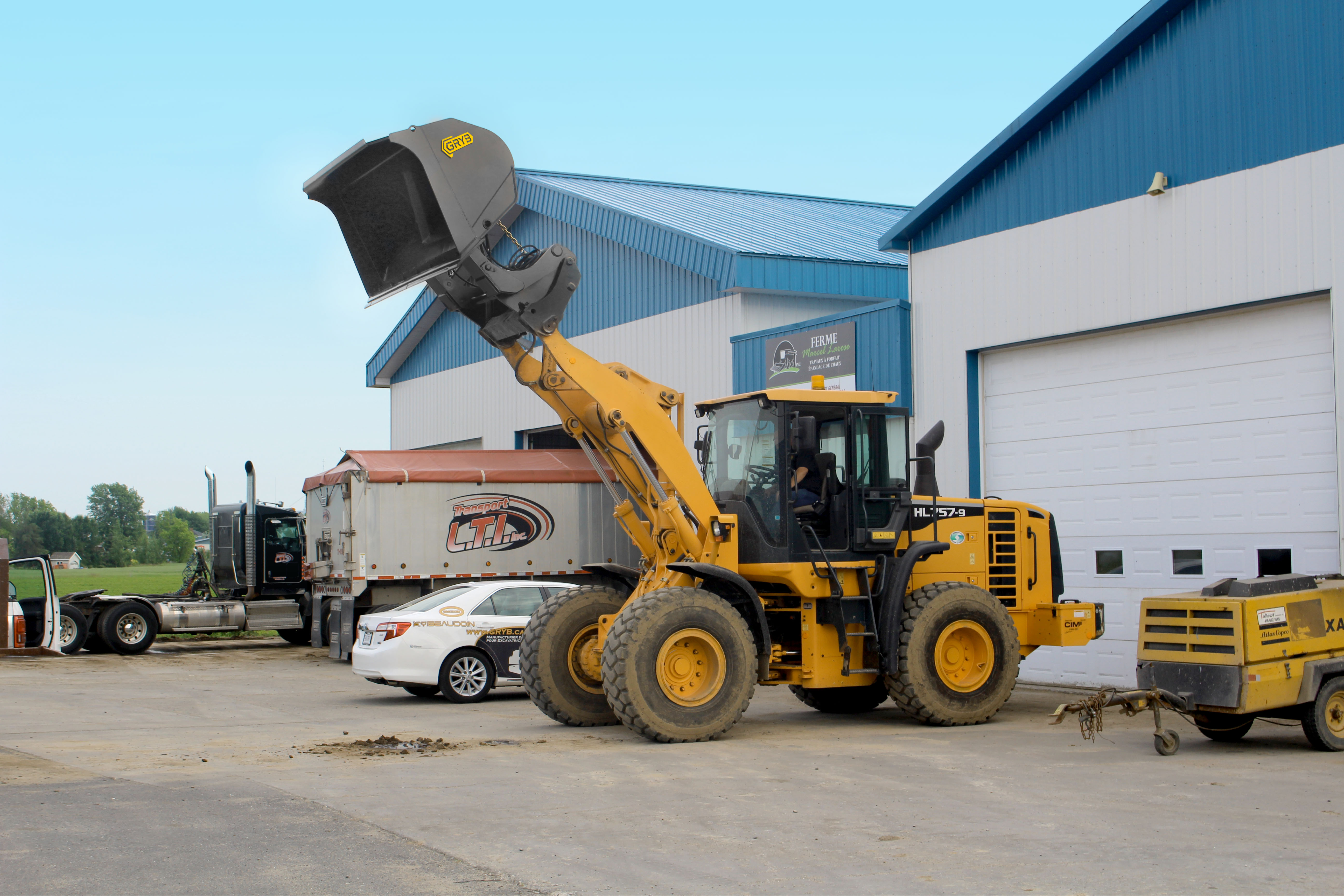 GRYB's high dump bucket is the most versatile attachment for light and multi-purpose work. Our high dump bucket boasts two hydraulic cylinders, enabling a 120 ° effortless release. Damping pads are installed on the high dump buckets to minimize the impact on return to the working position.